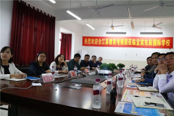 10月9日,泸州市合江县人民政府副县长宋远平率领教育局、财政局、阜阳国资公司等组成的教育考察团莅临宜宾东辰国际学校考察翠屏区合作办学模式。翠屏区人民政府副区长廖霆及教育局、财政局相关负责人陪同考察。