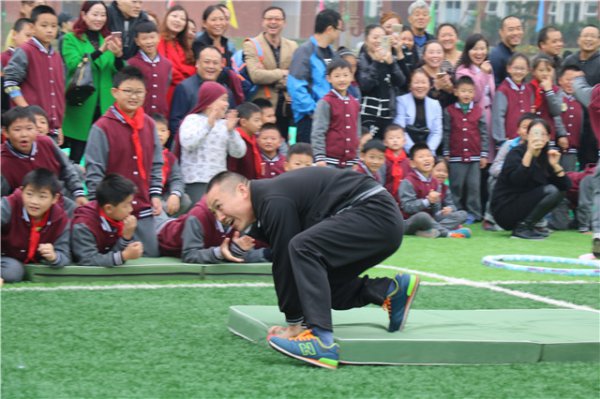 为促进家校共建,学校特别邀请了所有家长、老师和同学一起参加趣味亲子活动。体育组老师们为大家示范着规范动作,孩子们摩拳擦掌跃跃欲试,家长们也难得放松一次,准备大显身手。