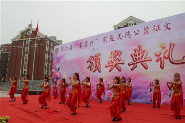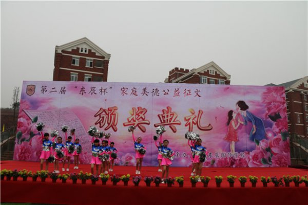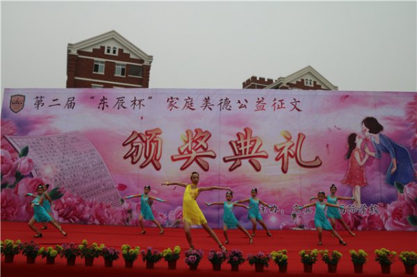 本次征文活动以“礼赞母爱 相约东辰”为主题。母爱,是人间最美好的词语,是最甜蜜的呼唤!她蕴藏在我们每一个人的内心深处,就像种子隐藏在地里。当我们极度孤独无助的时候,在我们无比幸福快乐的时候,不经意的她会从我们心里蹦出,就像芳香从玫瑰花蕊中散发出来那般自然。值得每一个人用心去品味和赞美!节奏明快的《啦啦操》把大家的目光吸引到了颁奖舞台。执行校长黄迪定宣布典礼正式开始。
