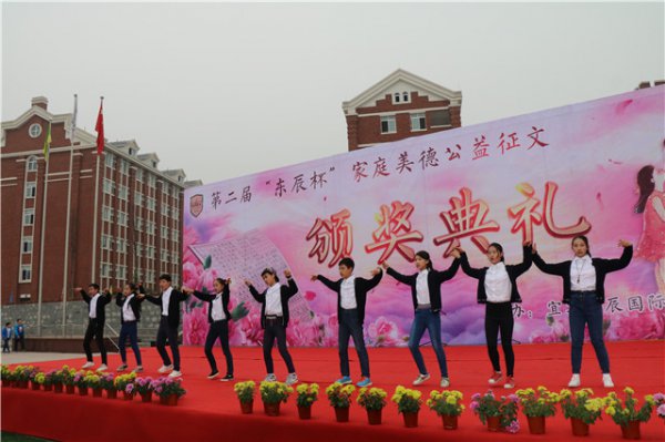 初中部校长吴柳江与家长和孩子们分享了家庭教育理念:“不积跬步,无以致千里;不积小流,无以成江海”。希望孩子们在以后的生活中多观察、勤思考,学会积累,学会感恩父母、感恩老师,希望孩子们都能成为有世界眼光的现代人!颁奖典礼以东辰教师自编自演的《家道之兴》经典诵读落下帷幕。