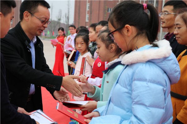 执行校长黄迪定、后勤部校长肖佑琪、初中部校长吴柳江、小学部校长廖俊为获奖的孩子们颁发奖状和奖金。孩子们脸上洋溢着满满的喜悦和自信,这种自信正是宜宾东辰国际学校希望看到的,也正是东辰教师正在辛勤培育给孩子们的,相信也是家长们所期望看到的。