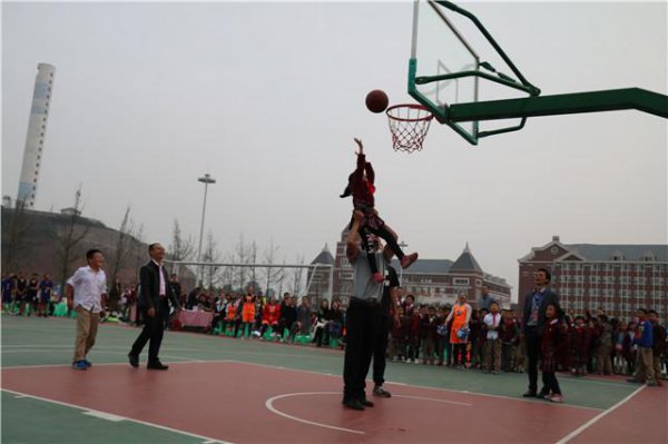 在第一篮球场,初中部校长吴柳江宣布师生友谊篮球赛正式开始,由执行校长黄迪定开球,艺体中心主任、国家一级裁判汪玉阳和体育组老师曹汐担当裁判,比赛正式拉开了序幕。