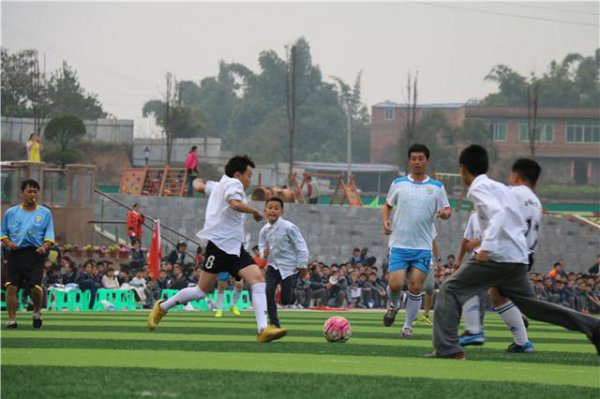 15日,在足球场,师生友谊足球赛开赛啦。体育组老师罗健和王佳宇、王应乾两名同学担当裁判,教师队和学生队在绿茵场展开了激烈的角逐。开球以后,教师队首先控球,但学生队毫不示弱,奋力拼搏,找准机会夺球并牢牢控住,只见双方球员在两个球门之间奔跑得不亦乐乎,场下师生观众呐喊声声不绝于耳。比赛最终以教师队领先两球获得胜利。