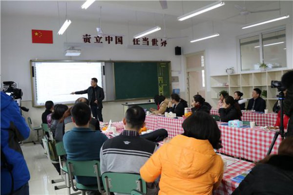 在教室里,黄校长为家长们做了“为了教育的理想,做理想的教育”的主题报告。黄校长从自身的成长经历出发,把东辰的教育理念、教育理想、管理模式、教学课程、师资配置、宜宾东辰与绵阳东辰的关系及初升高衔接教育注意事宜等为家长们做了详细解说。