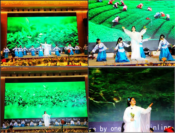 宜宾东辰小学的宝贝们终于上场了,美丽的茶仙老师带着宝贝们上茶艺课,讲诉《一杯茶》的故事:红茶、黄茶、绿茶、白茶、乌龙茶、黑茶……仙子载歌载舞娓娓道来,给观众们带来绝美的视觉感受和浓浓的茶文化气息。
