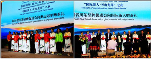 向国际茶人,奥运冠军赠茶礼。