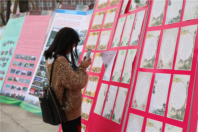 家长们驻足于学校教育教学成果展示前,对学校重点打造的德育教育、挖掘孩子潜能的特色课程教育、灵活生动的常规课堂教育等展示无不认同。