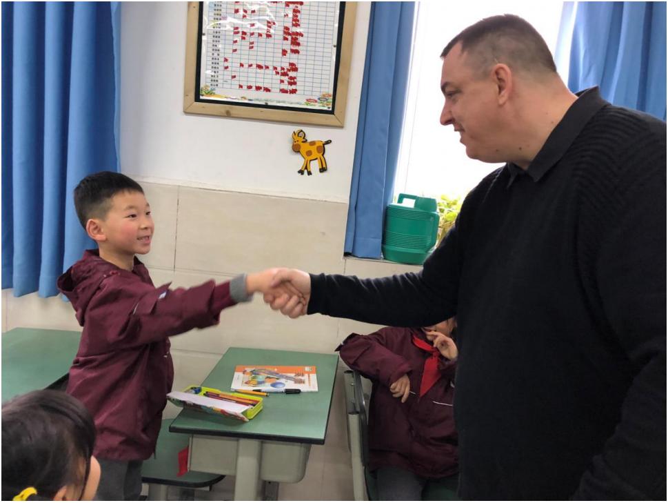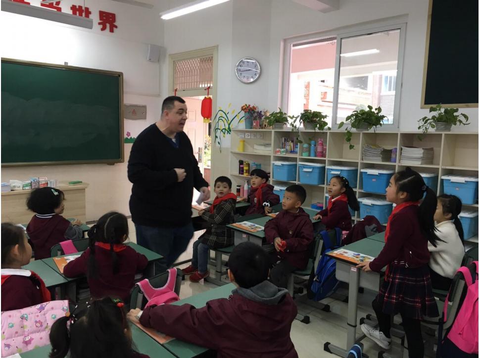 接着,Mark老师分别和二到六年级各班的孩子们见面。孩子们对站在眼前的Mark老师充满了好奇和期待,一个个都期待着上Mark老师的课。