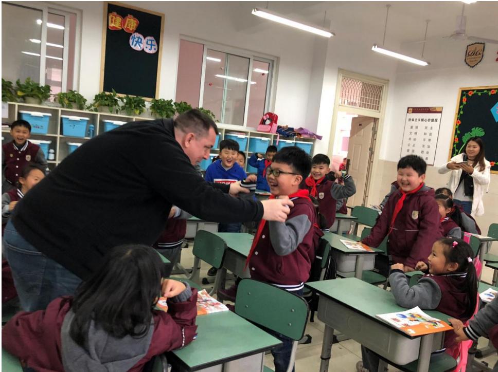 在孩子们喜爱的英语课堂里,迎来了一位活力四射且风趣幽默的外教老师——Mr. Mark。