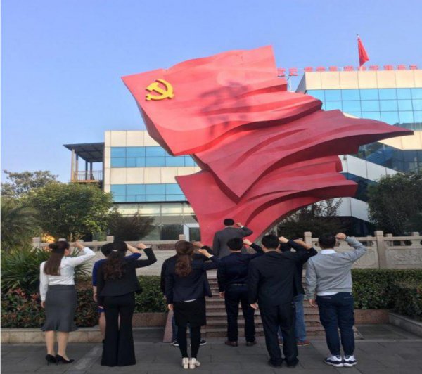 最后,全体党员面对党旗重温入党誓词,共唱《没有共产党就没有新中国》,作为共产党员的自豪感、责任感、使命感油然而生。