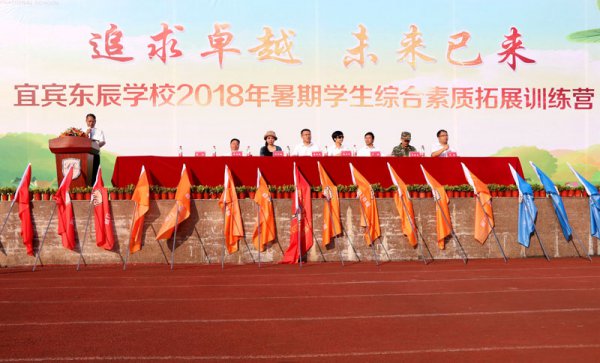 八月骄阳似火,激情燃烧;八月桂子飘香,心潮澎湃。伴随着青春的脚步,莘莘学子相聚东辰,今天,我们在这里隆重举行宜宾东辰学校2018年秋期中学部综合素质拓展培训开营仪式。首先,我谨代表学校向成都市青葱教育咨询有限公司全体教官表示最热烈的欢迎和诚挚的感谢,向为此次综合素质拓展培训筹备工作付出心血与汗水的所有同志们表示衷心地感谢,同时欢迎优秀的同学们,奋发的勇士们选择宜宾东辰,你们已经是一名光荣的东辰人了。