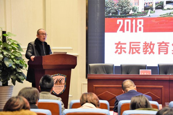 黄校长说,他今天站在这里,代表的不仅仅是他个人,也不仅仅是校长团队,而是代表全体东辰人述职。黄校长从学校概括,工作概述,办学成果,办学困惑,回眸展望五个方面回顾了2016年建校以来的办学历程。回首2016,放飞梦想,扬帆起航;回眸2017,不惧风雨,砥砺前行;回望2018,科文并举,立德树人。他说,务实是学校发展的根本,创新是学校发展的源泉,行动是学校发展的唯一通道。我始终相信:在一起共同干事情,解决问题是形成团队的最佳形式,为了彼此需要,我们相互支持,让我们一起“挑逗”师生的“欲望”,强化师生的“感知”,放大“人”的潜能,追求卓越,幸福共美,真正做到办学一地,造福一方!