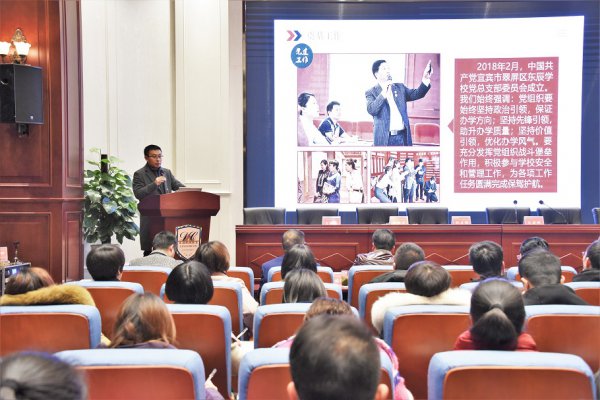 绵阳东辰国际学校副校长,宜宾东辰学校校长黄迪定做了题为“不忘初心,砥砺前行;追求卓越,幸福共美”的述职报告。