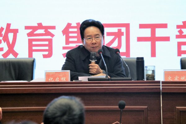 文宏斌校长代表绵阳东辰教育集团做了重要讲话。他说,宜宾东辰学校由翠屏区政府、绵阳东辰国际学校和宜宾东辰教育投资有限公司三方联合举办。办学以来,宜宾东辰人不惧风雨,砥砺前行,短短的三年时间内,在川南教育大地声名鹊起。这与全体东辰人众志成城是分不开的,与祝启程校长独特的办学思想是分不开。文校长代表绵阳东辰教育集团对宜宾东辰学校取得的可喜成绩表示祝贺。同时,他阐明了本次视导的意义,并对为期两天的视导工作做了详细安排。