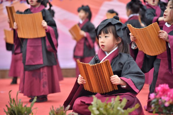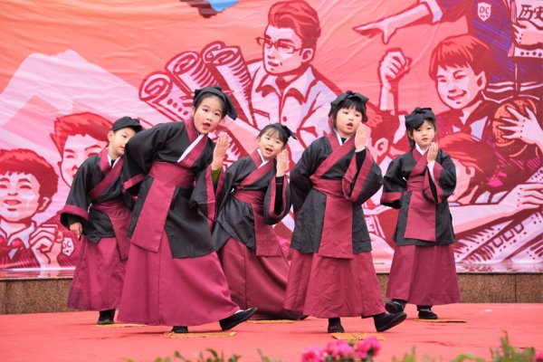 在表彰过程中,小学部可爱的孩子们给大家带来了“宜宾少儿春晚最佳表演奖”精彩节目《三字经》。三尺汉服,八寸竹简,向先贤圣哲致敬,智仁忠信,廉耻礼仪,将中华文化传承。