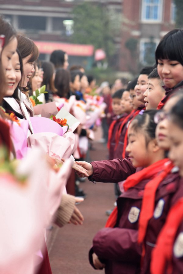 亲爱的老师,您辛苦了!亲爱的妈妈,您辛苦了!五六年级学生在主持人的带领下,献上了美丽的鲜花。在这温暖的三月,愿你们健康幸福;在这特别的日子,愿你们长乐未央。