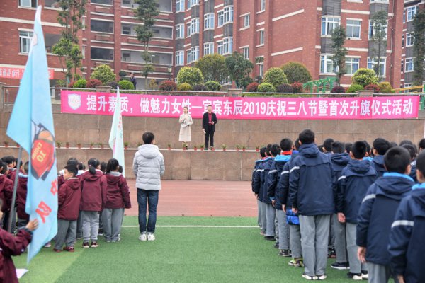 在春光烂漫的日子里,我们即将迎来第一个重要的节日——“三八”国际妇女节。在新学期第二周星期一升旗仪式上,宜宾东辰学校全体师生在绿茵操场庆祝这样一个特别的节日。