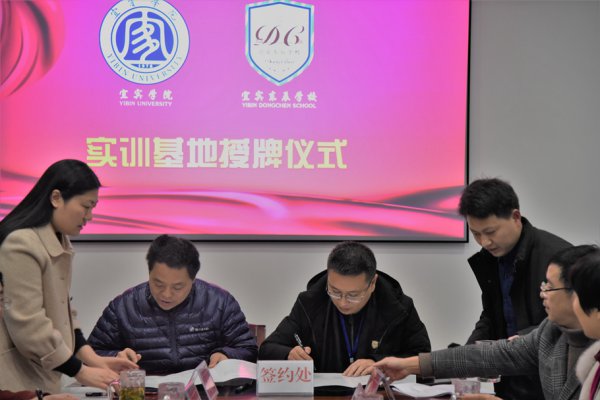 仪式上,高曾辉处长代表宜宾学院授予宜宾东辰学校“实践教学基地”,并与宜宾东辰学校校长黄迪定共同签署实践教学基地协议书。