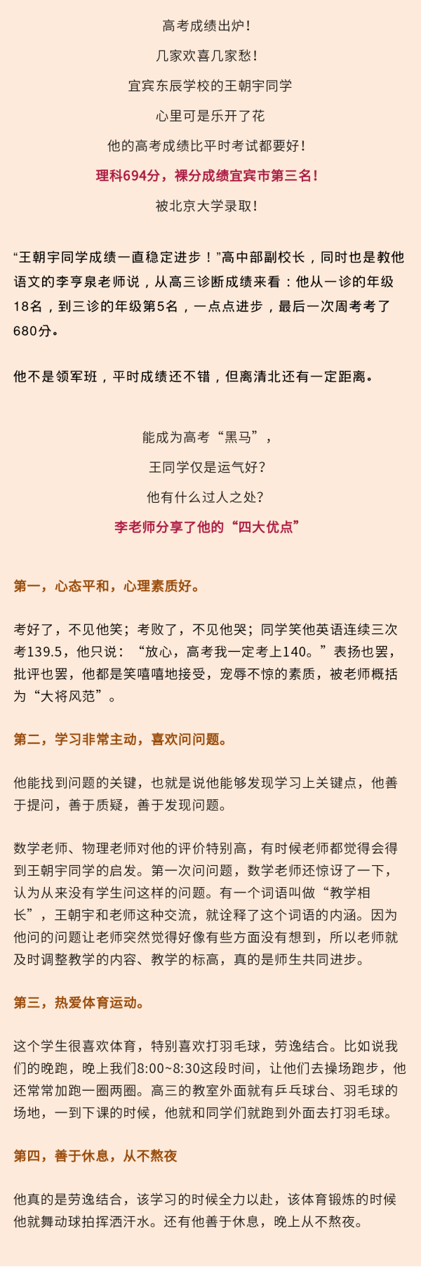 694分!宜宾东辰“高考黑马”王同学的四大优点…