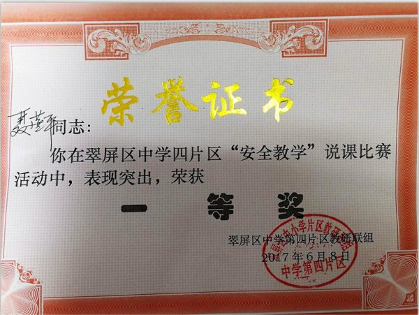 虽则竞争激烈,面对优秀的行知老师,聂老师仍旧完美地HOLD住了全场,赢得了专家评委的一致好评,成为了中学四片区参加翠屏区“安全教学”说课比赛的参赛教师。赛毕,聂老师与各评委以及行知的优秀政治教师进行了深入的交流,建立了教学战线上的真挚友谊。