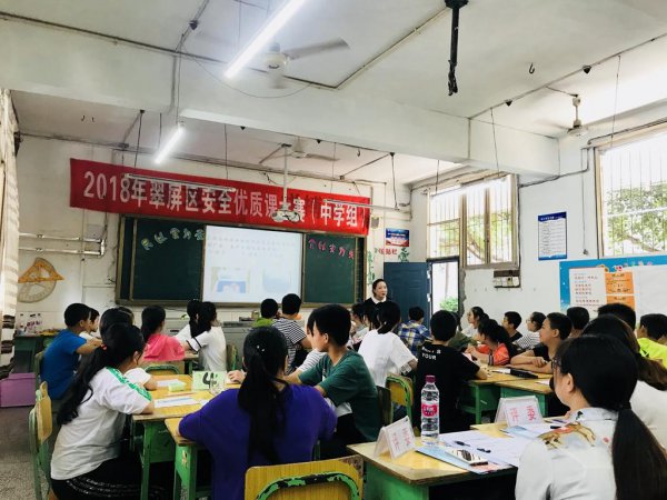 2018年6月19日,我校七年级4班的班导陈怡老师为宜宾市六中的40多名学生献上了一堂别具特色的食品安全展评课。