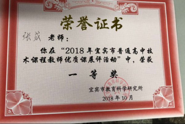 喜讯:我校张成老师荣获“2018年宜宾市普通高中技术课程教师优质课展评活动”一等奖!