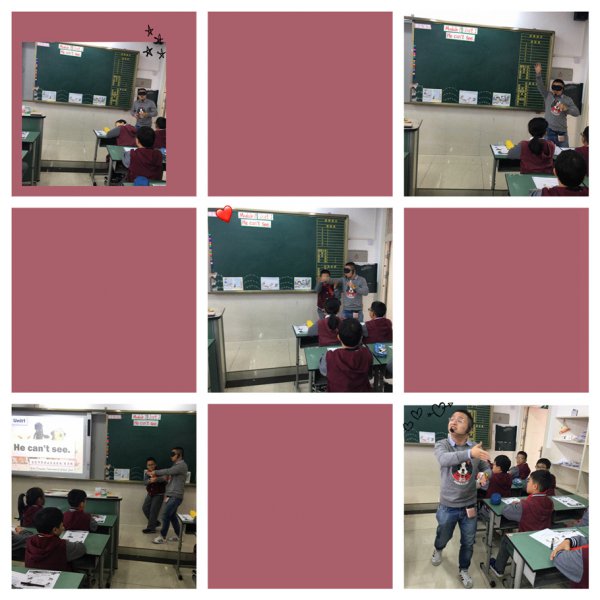 在课堂评价方面,李老师采用了步步为营的方式,三个小组分别拥有三只属于自己组的小狗,分别给出了三个情景中需要被帮助的人类,孩子们通过自己的课堂表现,让自己的小狗去帮助这些人类。紧扣本堂课的功能话题,让孩子们在情景中学习英语。