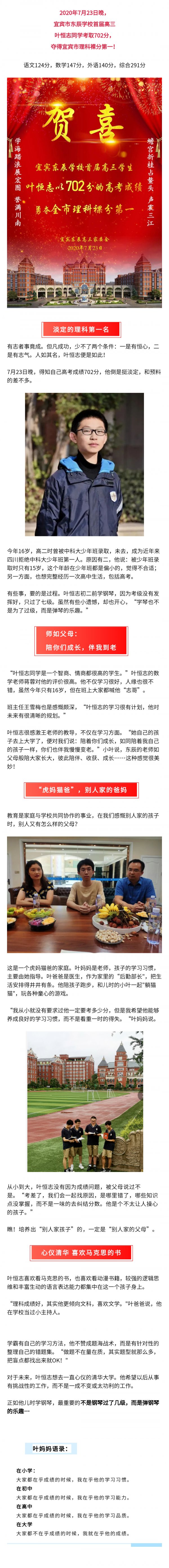 高考702分,2020年宜宾东辰学子 获全市理科裸分第一!