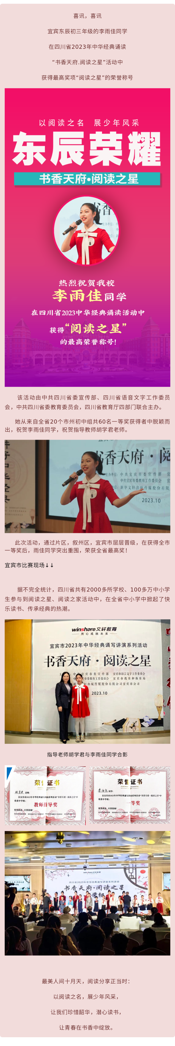 全省最高奖!祝贺东辰学子李雨佳获得“书香天府●阅读之星”荣誉称号
