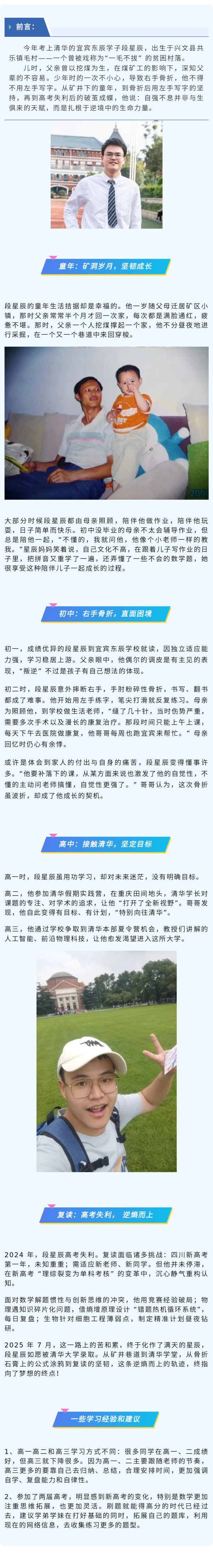 从矿井巷道到清华学堂,祝贺宜宾东辰段星辰同学如愿以偿!