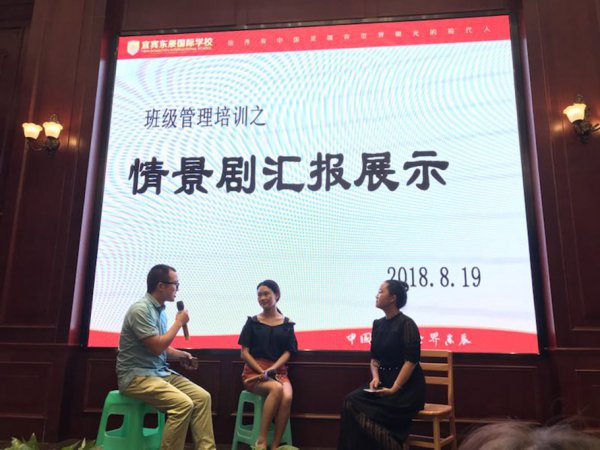 夏老师给出6个班级管理存在的难题,依次报数分组,各小组在组长的带领下群策群力,集思广益,在短暂的彩排之后给大家带来了一场精彩的戏剧。老师们入戏很深,一颦一笑,一举一动俨然就是一群戏精,赢得观众阵阵掌声。夏老师观摩了整个演出并作了指导,她赞叹道:“宜宾东辰教师有颜值、有演技、有爱心、有耐心,更有智慧和方法,他们都是一群被教书耽误了的明星演员。”