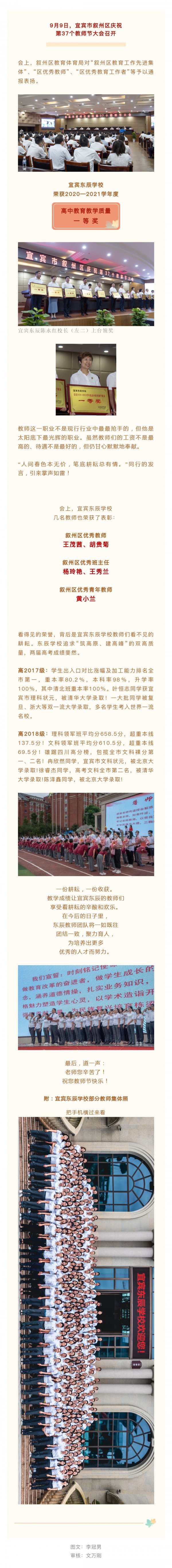 宜宾东辰学校荣获 “高中教育教学质量一等奖”!
