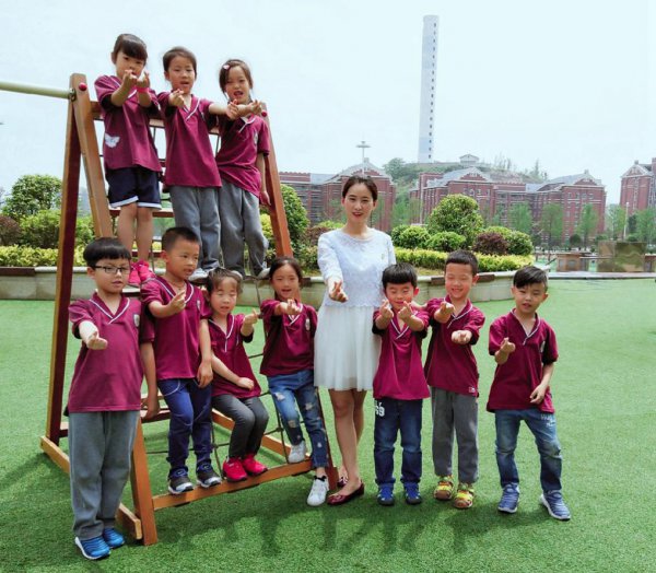 Maggie是谁?原来是幼小三班的班导兼英语老师——李林遥。一直坚持“言传身教”的她,时刻关注着每个学生的变化,善用鼓励性语言激发每个学生学习的潜能;课上,她热情洋溢,让每一个孩子不再羞怯于口;课后,她是可爱的“孩子王”与孩子们嬉戏玩耍。课间,教室外走廊上,她常常被一群孩子簇拥着,可爱的孩子甚至吊着她的身体,她嘴上说着“快下来,要不我把你们甩下去了哦。”手却很诚实地护着他们,生怕他们摔着了。李老师,愿你如阳光一般灿烂!