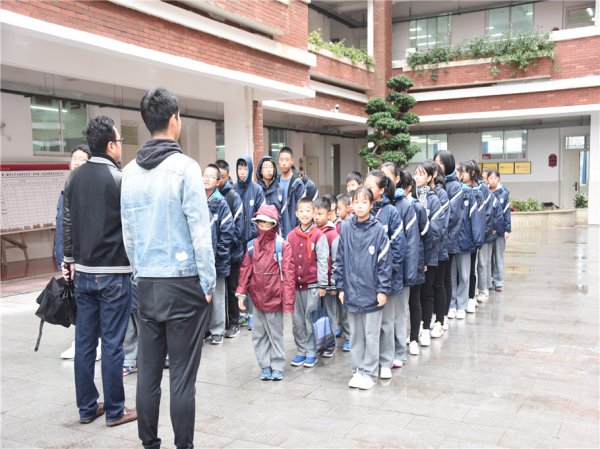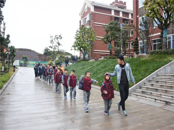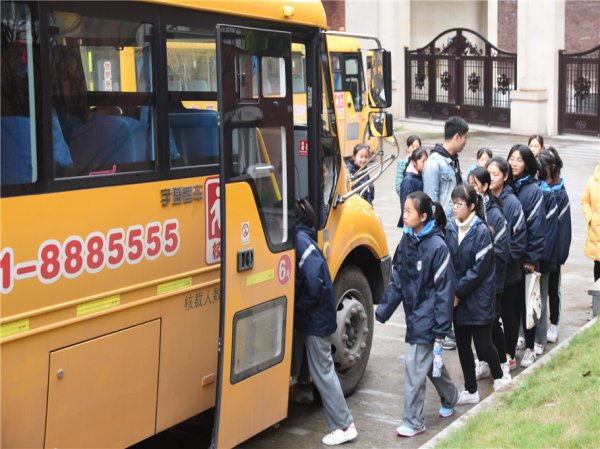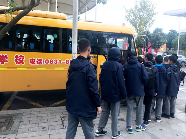 孩子们早早地就起了床,在食堂用过早餐后,大家激动又有序地来到操场列队。在老师们的带领下,孩子们有序地坐上校车,一起前往宜宾太平洋电影院图书馆店。