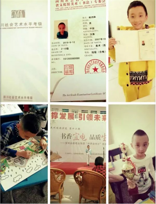 我从小开始学习画画、书法,喜欢阅读和写作,也收获了一些成果,更多的是陶冶了我的情操,培养了我的兴趣,提高我的审美能力,让我的生活更加丰富多彩。在活动中感恩老师的谆谆教诲和父母的支持。我会向着目标,一直努力前行!