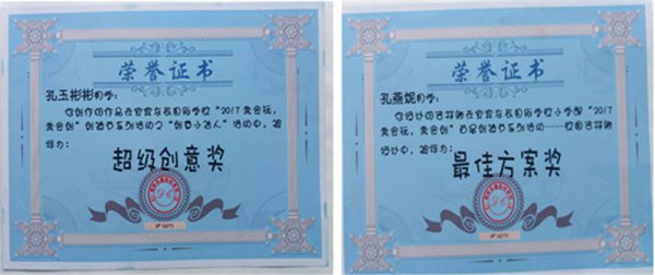 在宜宾东辰2017“我会玩 我会创”创造节活动中,她创作的作品荣获“超级创意奖”、“最佳方案奖”。成为唯一斩获两项大奖的学生。