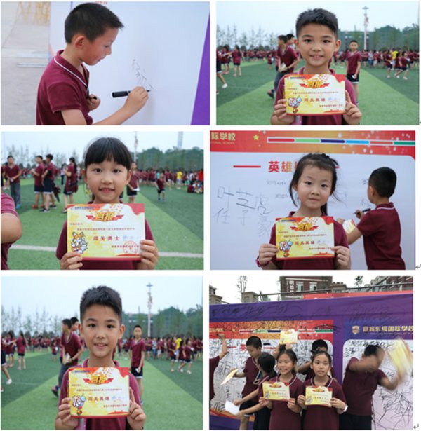 看到一个个闯关成功获得了“闯关英雄”、“ 闯关勇士”、“闯关能手”称号而喜悦的孩子们,看到孩子们奔上舞台擂响胜利的鼓点并在“英雄榜”上签上自己名字时那股自豪,看到那一张张如花的笑脸,平日辛勤教学的老师们也为孩子们的展示成果频频点赞!