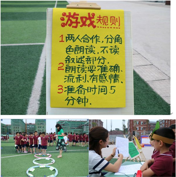 这一关为低年级孩子们设计了跳呼啦圈识字环节,在游戏中识字,真正做到了寓教于乐,快乐学习,让孩子在充满情趣的活动中识字;高年级则是根据阅读书目中的内容随机抽查问题,检测孩子们的识字及阅读能力成效。