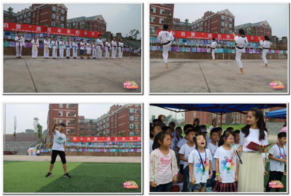 不经历风雨,怎能见彩虹!接下来,体育组老师带领小小跆拳道选手出场了。孩子们展示着一招一式、一脚一拳赢得了观众的热烈掌声。他们曾记得平日里的汗水滴湿了道服,虽然很疼、很累,但正是坚持不懈地努力,才练就了他们百折不挠的精神。