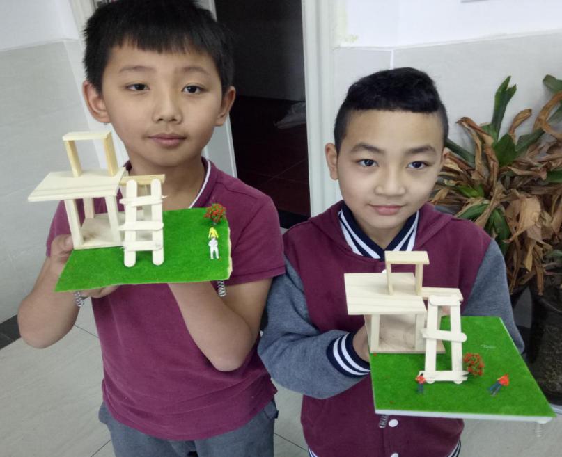 孩子们设计的这款地震安全逃生模型模型主要材料由塑纸板、草皮纸、原木块、模型人等组成。通过制作,他们亲身体验到了地震对校园环境的影响(模拟),以及对地震发生时怎样进行安全逃生的知识有更进一步的学习和了解。