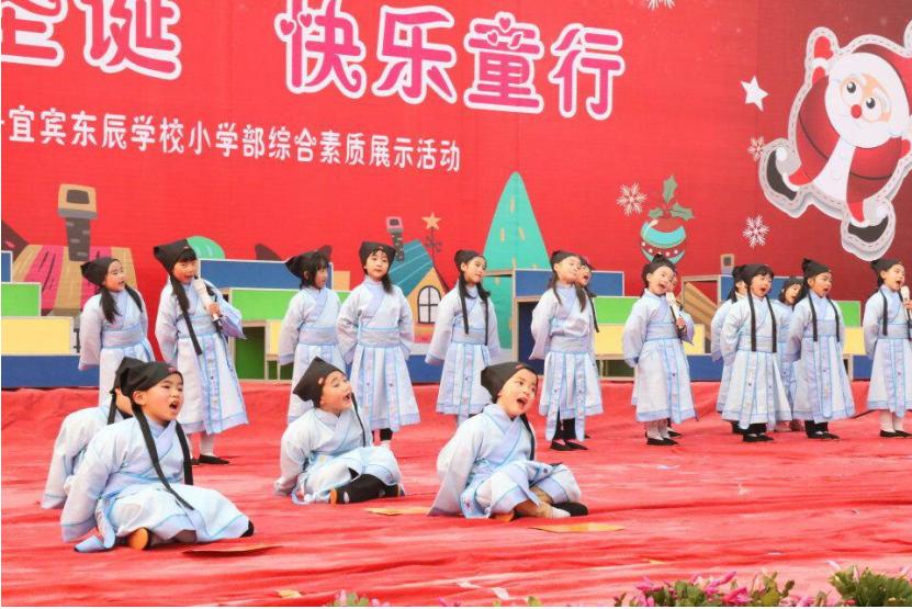 “欢乐圣诞 快乐童行”暨宜宾东辰小学部综合素质展示活动分为节目展演和特色课程体验两个部分。