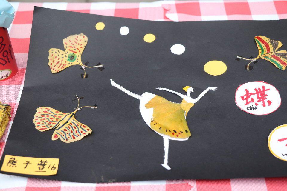 这是我们刚刚进入一年级的小朋友的作品,“爸爸,快看!快看!这是我们秋天捡来的叶子,我们把它做成了叶画”。