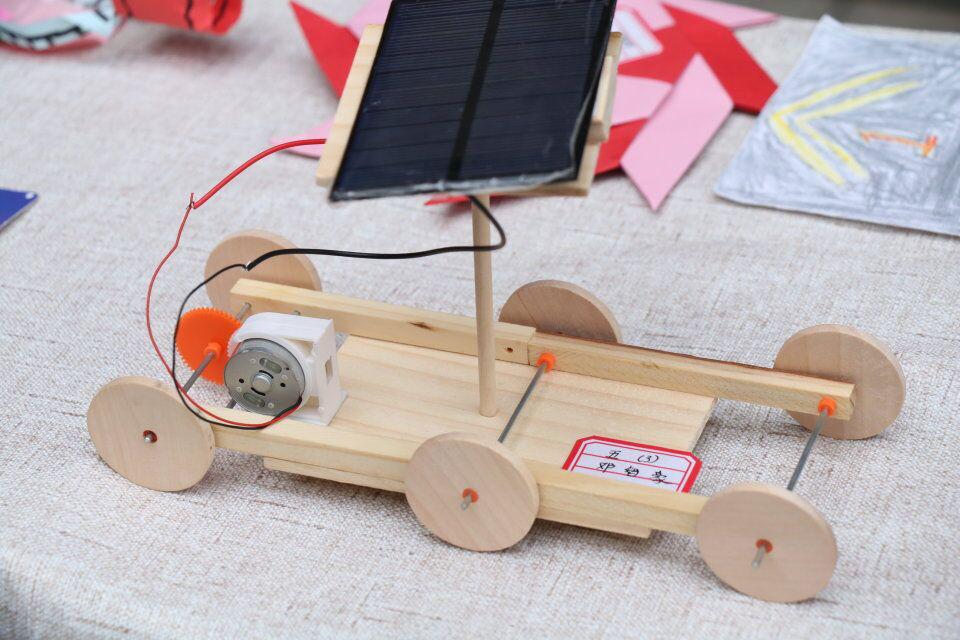 高段孩子们的作品就更显理智与沉静:机器人、大轮船、太阳能小车等。