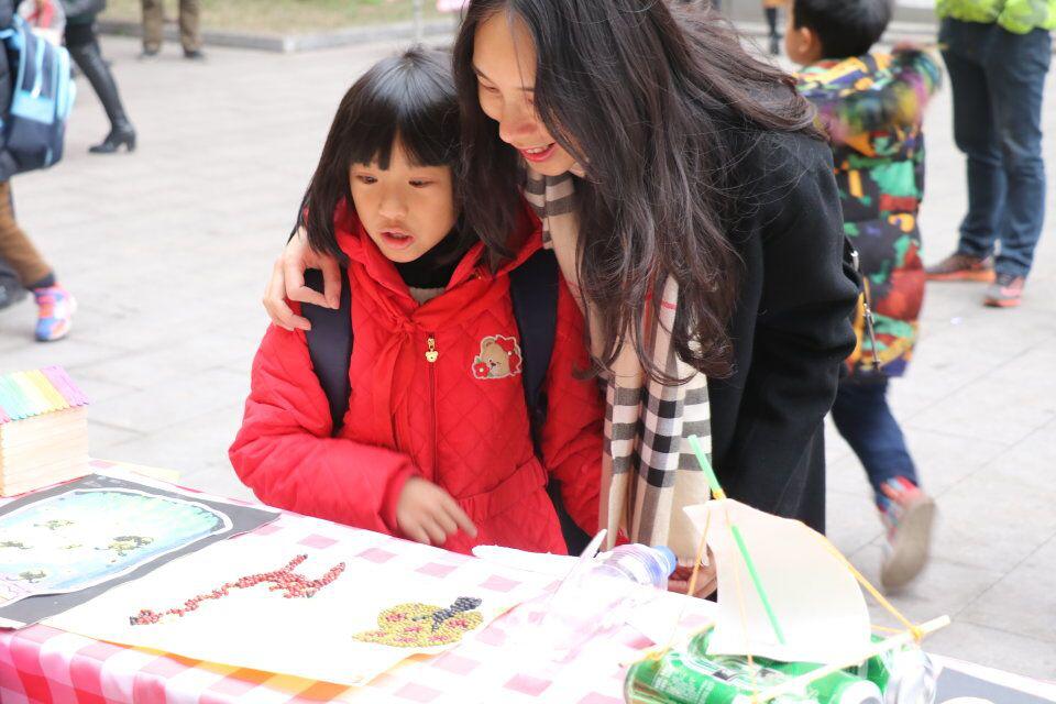 四五六年级的大哥哥大姐姐们起着榜样示范作用。一位妈妈正在和孩子欣赏优秀作品。用创新点缀人生,让艺术融入理想。通过本次创造节,提高了孩子们的科学意识,激发了他们“学科学、爱科学,讲科学、用科学”的热情,有效提高了学生的科学文化素养。孩子们对科学探究的热情愈加高涨了,“体验、创新、成长”不再是口号,已成为孩子们不竭的动力!