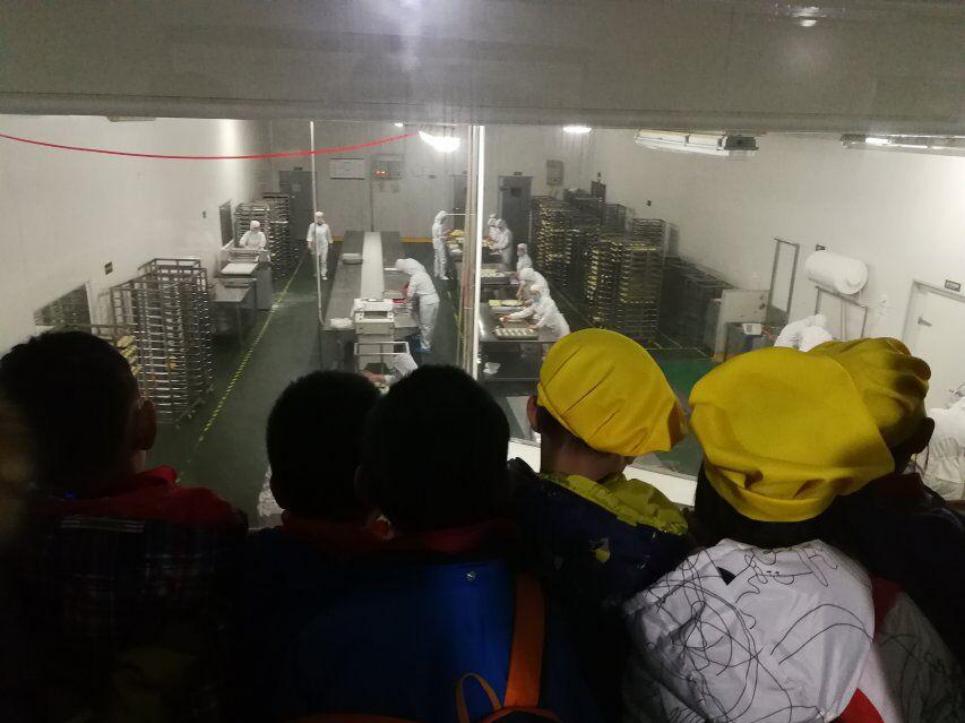 孩子们列队有序,文明参观,来到了文化长廊。从一幅幅糕点图中,感受到了糕点的多样化,领略其外在的美感,想象其独特的美味,视觉冲击和味觉反映碰撞形成合力,牵引着他们继续前进。孩子们徜徉在各个操作间中,有的孩子垂涎欲滴,闻香饥饿;有的孩子动手比划,跃跃欲试。在解说员详实的解说下,孩子们对面包、蛋糕、月饼等糕点的制作流程了解甚多,为下午亲手制作面包DIY做好了铺垫。