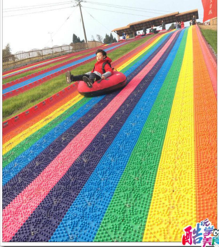 下午的滑草更是一项非常有特色的游乐项目。这次的草原之行,师生在草场,体验了滑草的刺激。从那又高又陡的滑道上滑下来,可别提有多爽了!七彩的滑草道溢满了孩子们快乐的笑声,幸福的童年乘着翅膀飞出天际。