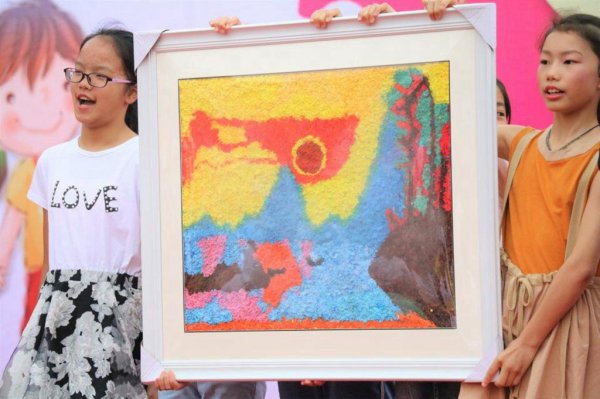 《葵花朵朵向阳开》、《日出》、《鲸鱼》、《荷叶圆圆》等作品引人注目,台下的家长竞相举牌,“嘣——!”拍卖师击槌定音,举牌者竞得作品,如获至宝,兴奋溢于言表。