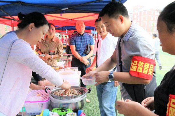 购买小商品的家长、孩子、老师络绎不绝。货真价实,诚信经营,随挑随选。其间,区食品监督员在各摊位来回巡查,随机抽查食品质量。