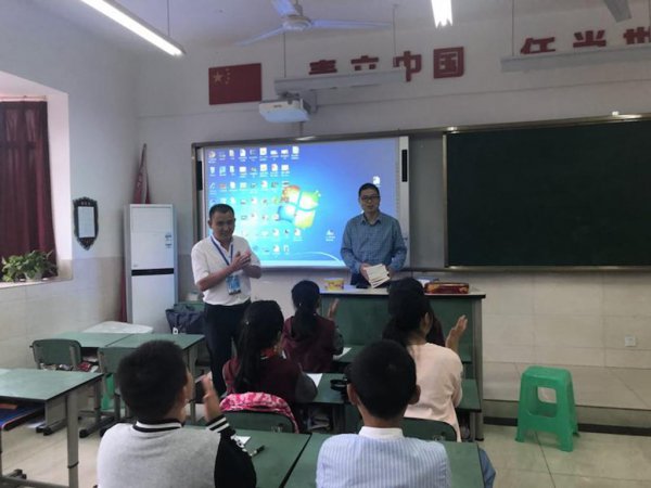 在赠书活动中,孩子们热情高涨,小编能从孩子们一双双闪闪发亮的眼睛和一张张洋溢着笑容的小脸上看到他们对知识的渴求。一位小女孩还激动地对同桌说:“我把我的书看完了可以和你交换吗?我很喜欢今天老师发的这些图书。”