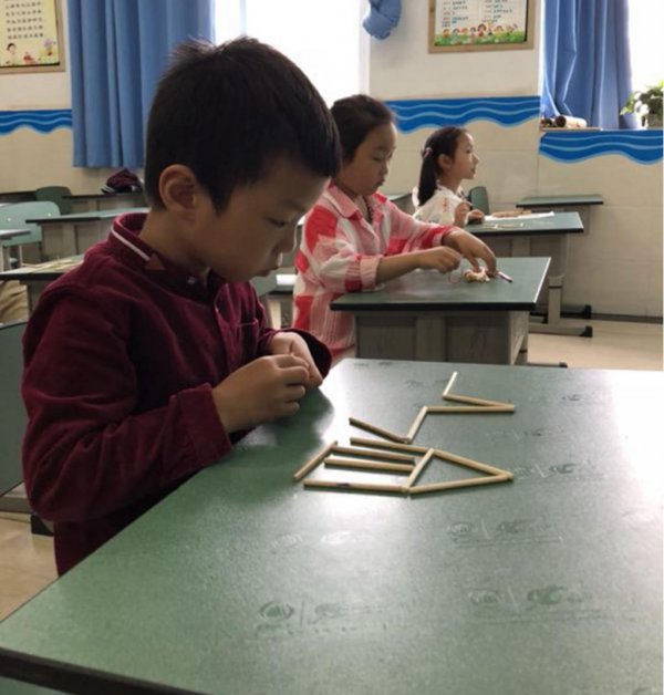 瞧,宝贝们在数学乐园里“玩”得多认真!一根根小棒不仅仅是数学教具,更触发了孩子们思维的灵感。
